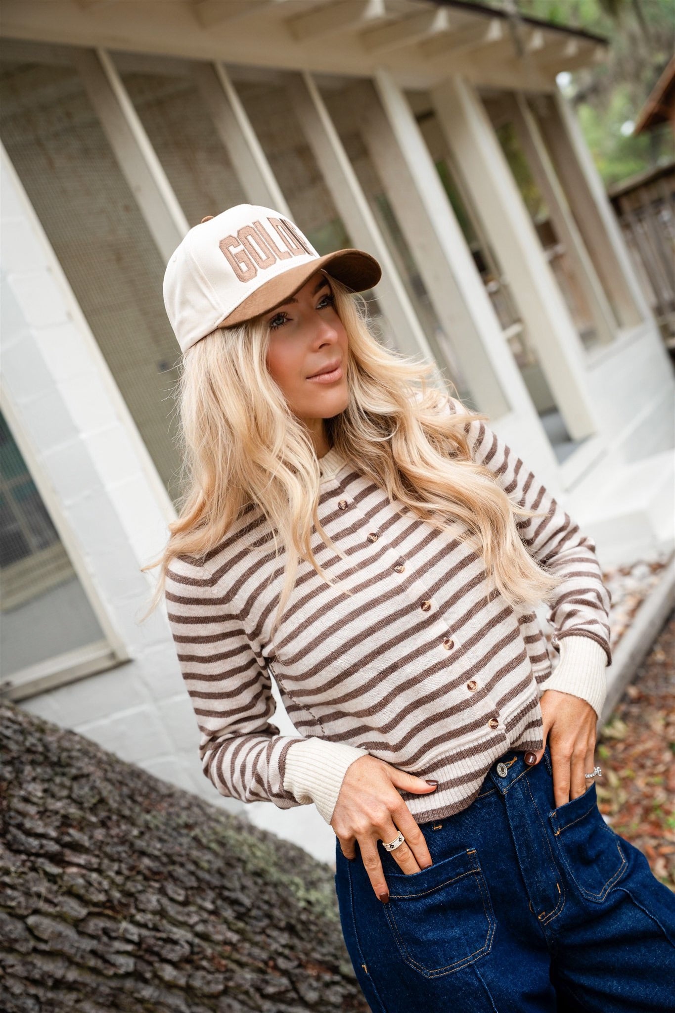 Cozy, classic, and a little bit dreamy. The Blaire Cardigan brings soft autumn tones together in a striped pattern that feels like your favorite latte. With its button-front design and warm oat-butter hues, it’s the perfect layer for chilly mornings, coffee runs, and everything in between.