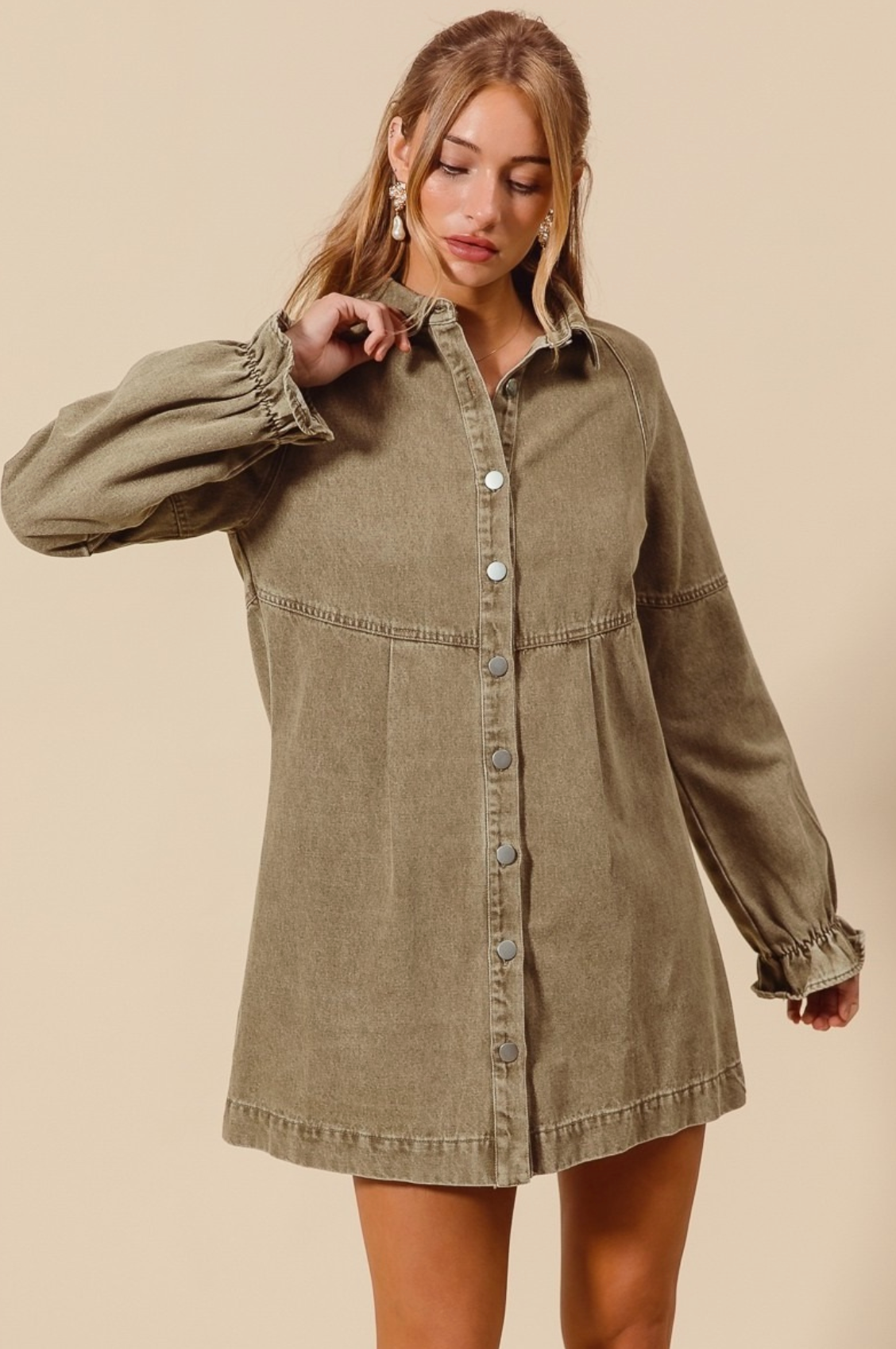Effortlessly cool and casually chic, this mini dress features a full front button closure and a relaxed shirt-style silhouette. With playful mini length and handy chest pockets, it’s the perfect go-to for easy, everyday style.