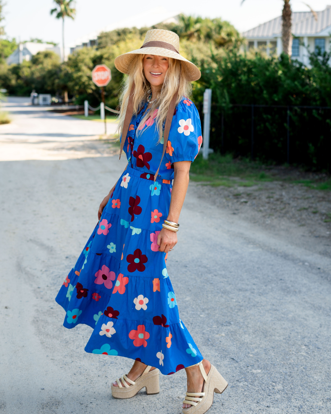 Bloom Set is a dreamy blue set features a puff-sleeve button-down top (sweet but not shy) and a full, flowy maxi skirt that moves like a breeze off the Amalfi. Covered in soft floral details, it’s the kind of outfit that turns coffee runs into main character moments.