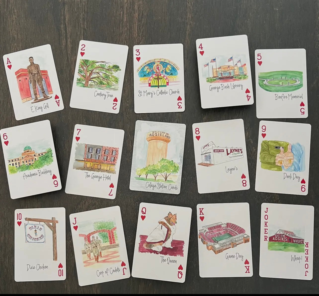 A College Station deck of playing cards featuring popular College Station imagery, including scenes from the city of College Station and popular A&M memories!