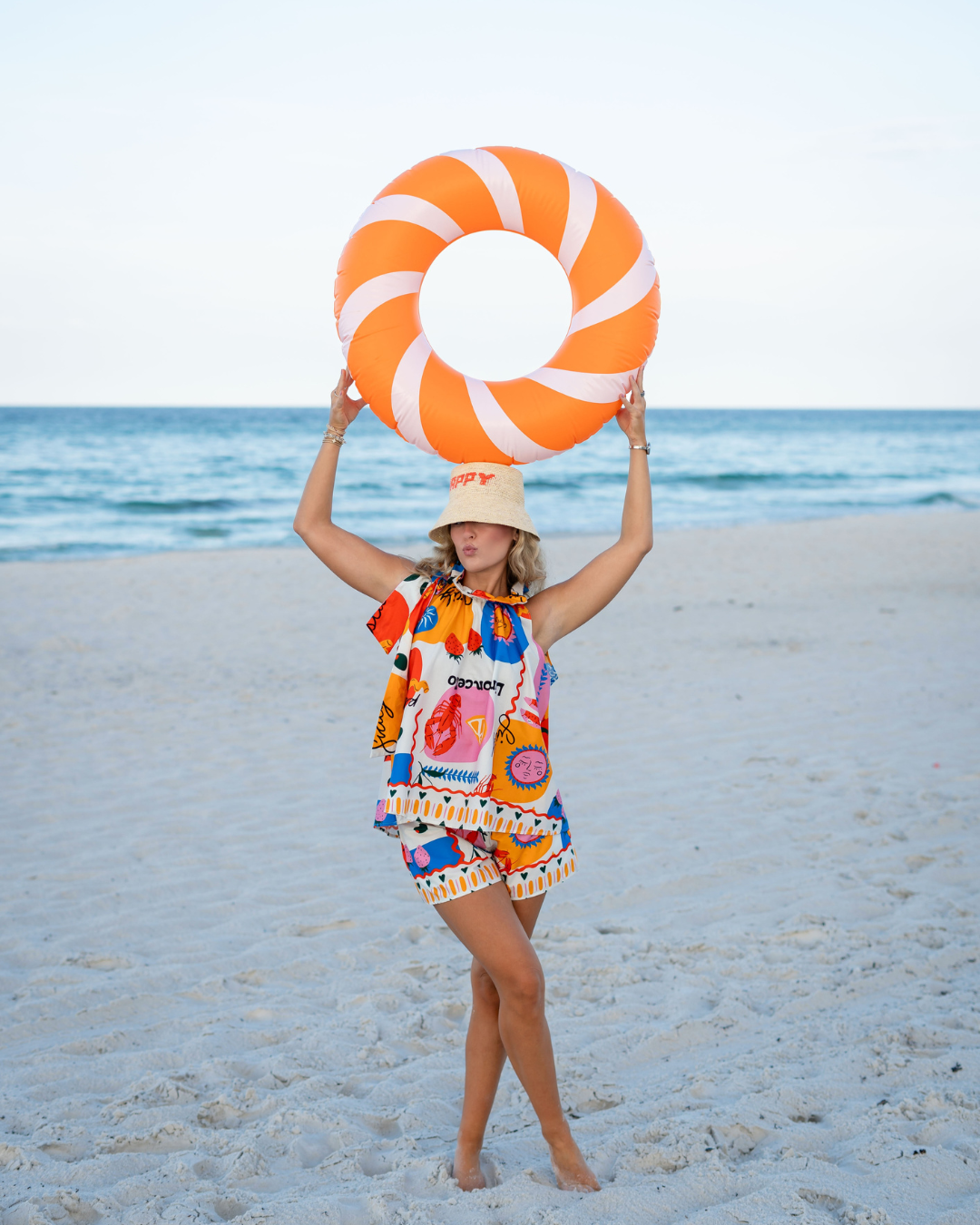 Bursting with bold vibes in orange, blue, red, and white, Positano Set (Blue) is your go-to for turning heads under the sun. The sleeveless full-length top brings all the breezy energy, while the matching shorts keep it cute, comfy, and coordinated. Printed with fun, flirty patterns that scream vacanza, this set was made for Aperol spritzes, seaside strolls, and being the most colorful thing on the cobblestone.