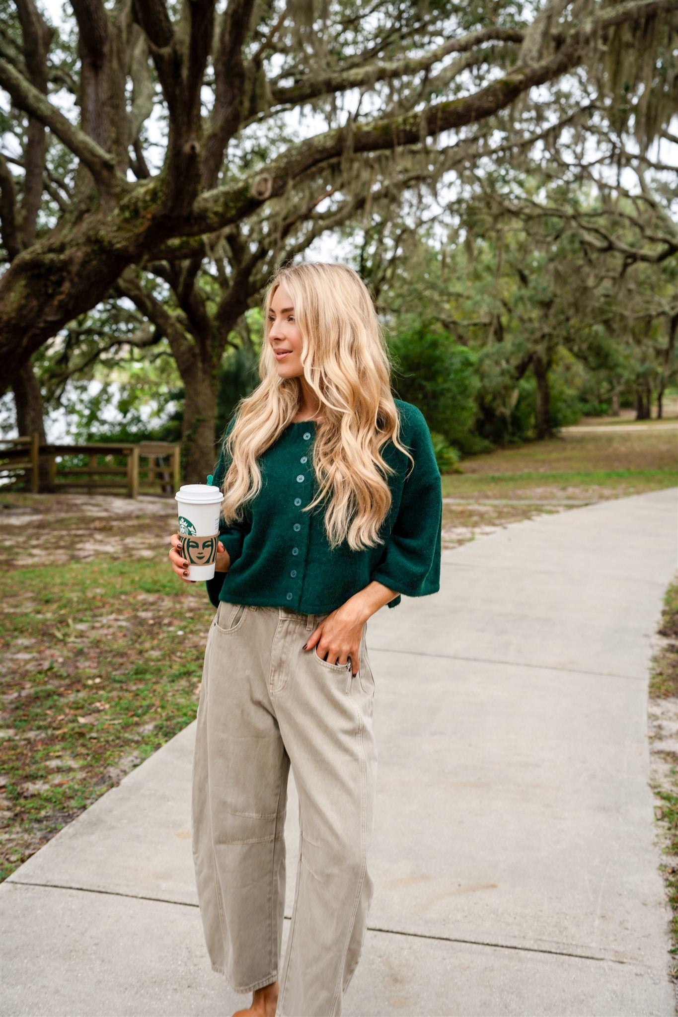 Designed with a button-down front and soft ribbed knit, it’s the kind of piece that looks effortlessly put-together whether you wear it buttoned or layered open. A must-have for your chill-but-chic days.